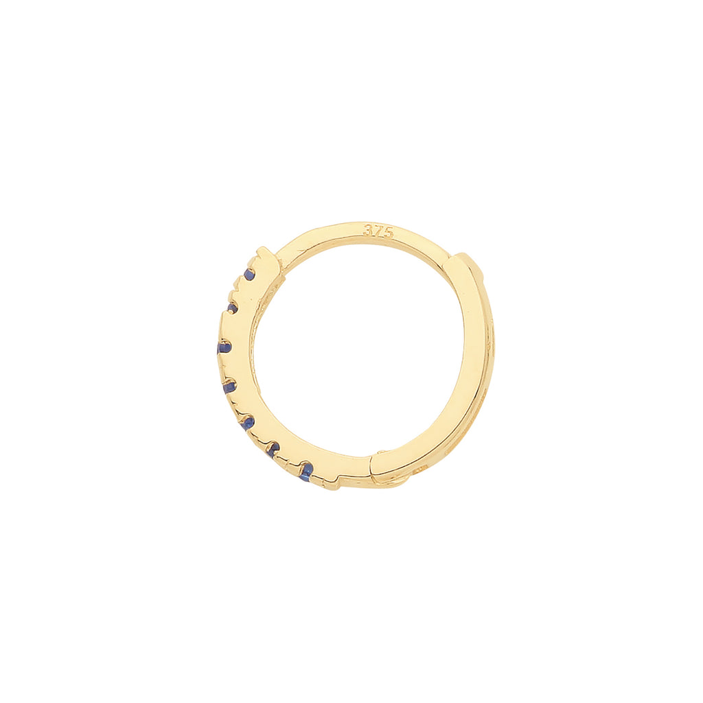 9CT YELLOW GOLD SAPPHIRE BLUE CUBIC ZIRCONIA SINGLE CARTILAGE HUGGIES 9MM