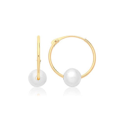 9CT YELLOW GOLD SLEEPERS EARRINGS WITH FRESHWATER PEARL