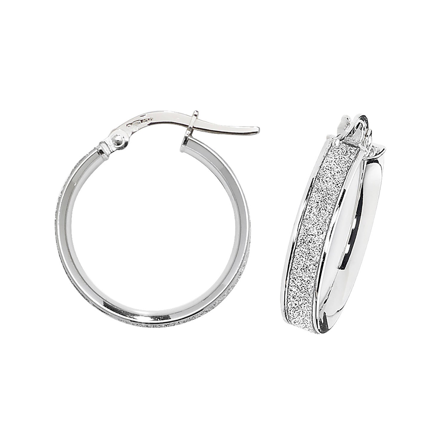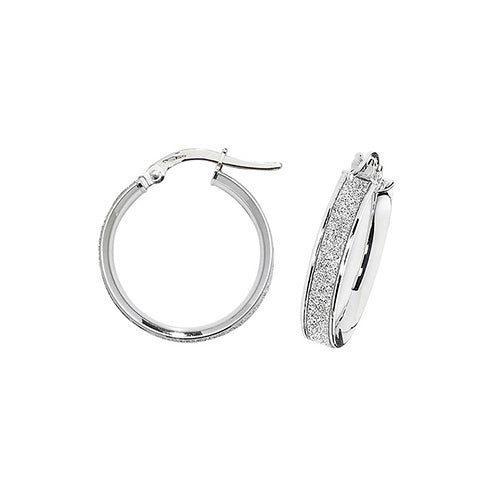 9CT WHITE GOLD MOONDUST HOOPS 15mm 1.8g